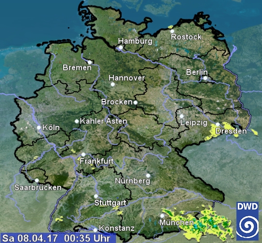 Radarbild von Samstag, 08.04.2017 um 00.35 Uhr