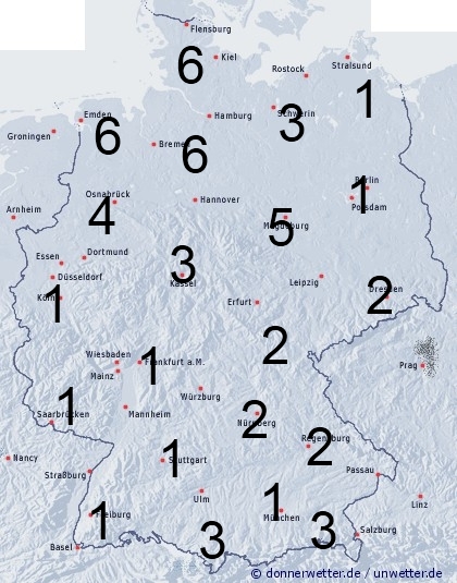 Im Norden sorgt Regen für eine Benetzungszeit zwischen 3 und 6 Stunden. Auch in Teilen Bayerns kann es in Folge örtlicher Schauer zu einer Benetzungsdauer zwischen 1 und 3 Stunden kommen. Sonst entsteht leichte Benetzung nur durch nächtlichen Strahlungstau.