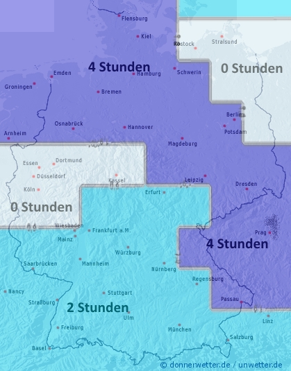 Wir stellen die Blattbenetzung generell in Stunden pro Tag auf der Karte dar. Durch die Lage des Feldes kann die Benetzungsdauer allerdings variieren.