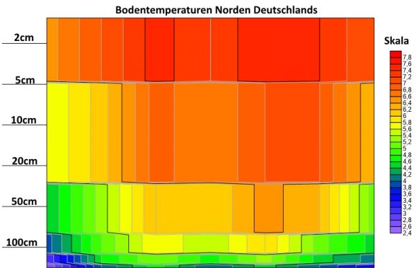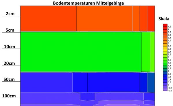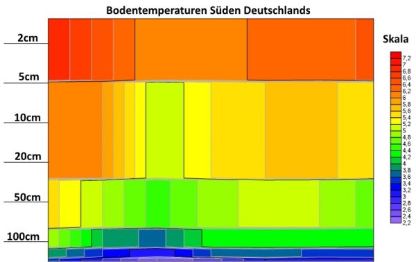 Bodentemperaturen rund um Deutschland