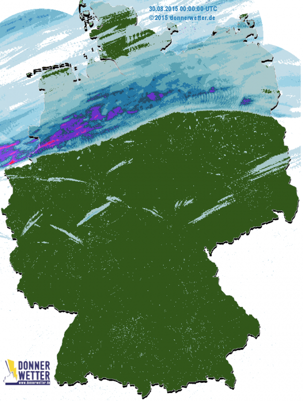 Nachmittags Schauer und Gewitter an der Küste und nachts im ganzen Land. Hier geht es zum Deutschlandwetter.