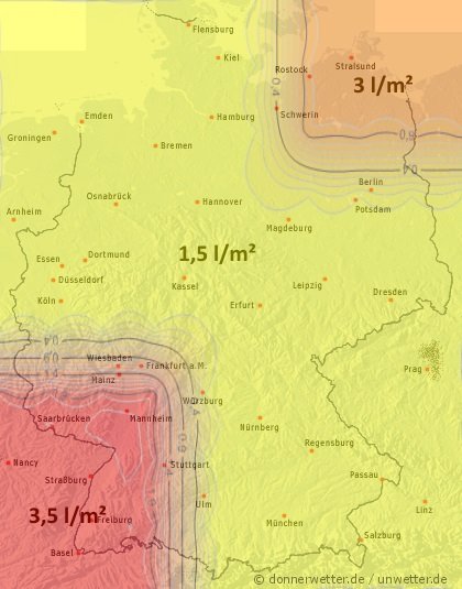 Nördlich einer Linie Münster-Berlin blieb es hingegen weitestgehend trocken. Nur in seltenen Fällen kam es zu vereinzelten, kurzen Schauern.