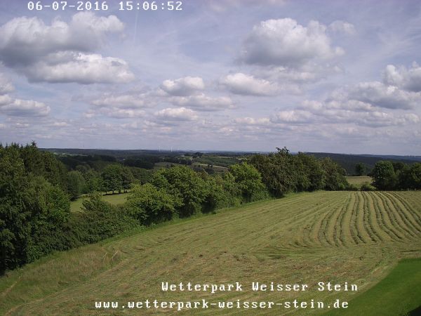 Nur an der Ostsee gab es einzelne Schauer, sonst blieb es trocken. Auch heute sind kaum Schauer zu erwarten. Aber keine Sorge, ab dem Wochenende folgen wieder Schauer und Gewitter. Viele Landwirte nutzen das Wetter zum "Heu" machen und zum Silageschnitt. Hier unsere Aufnahme aus der Eifel am Donnerwetter.de Wetterpark aus 700 m Höhe.