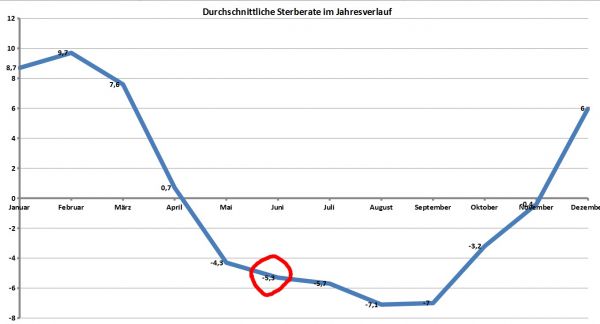Sterberate im Monat Juni: