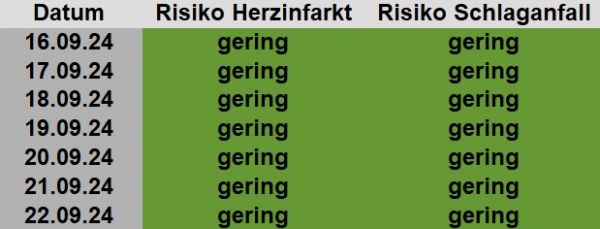Unser aktuelles Herz-Kreislauf-Wetter bis zum 22.09.2024.
