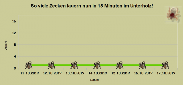 Durch das häufig freundliche und trockene Wetter in den nächsten Tagen geht die Gefahr für Zeckenbisse zurück.. Am Wochenende und in der kommenden Woche, finden sich im Unterholz bis zu nur noch 1-2 Zecken in 15 Minuten.