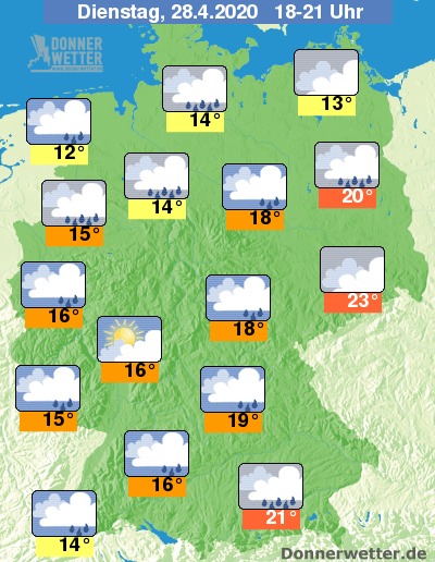 Am frühen Abend dominieren häufig die Wolken und bringen teilweise Regen oder Schauer. Örtlich kann es dabei auch blitzen und donnern. In Teilen von Mecklenburg-Vorpommern, sowie Sachsen bleibt es noch trocken.