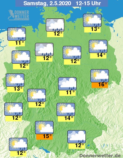 Heute Nachmittag zeigt sich der Süden zumindest zum Teil heiter und trocken, ansonsten ist es im Land jedoch verbreitet wechselnd bis stark bewölkt und es treten wiederholt Schauer, örtlich auch Gewitter auf. Die Temperatur steigt auf 11 Grad an der Nordsee und bis 16 Grad in der Lausitz.