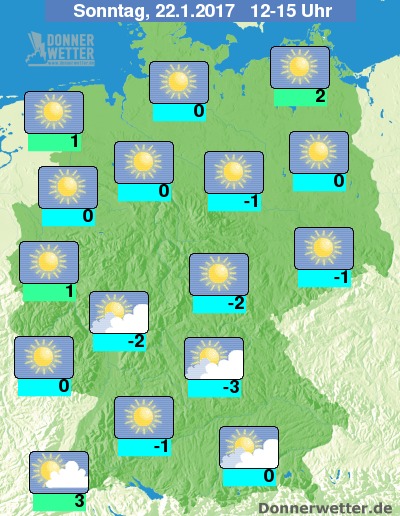 Der Sonntagnachmittag zeigt sich vor allem im Norden des Landes von seiner schönster Seite. Nördlich einer Linie vom Niederrhein bis zur Sächsischen Schweiz strahlt die Sonne von einem meist wolkenlosen Himmel. Im Süden können im Nachmittagsverlauf auch mal lockere Wolkenfelder durchziehen.