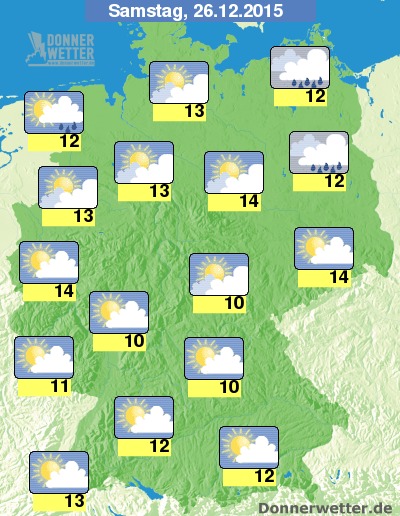 Am Samstag bleibt es im Norden noch verbreitet stark bewölkt, nur hier und da sind Auflockerungen möglich, dazu fällt auch zeitweise Regen oder Sprühregen. Über der breiten Landesmitte ist es oft aufgelockert, gebietsweise auch stark bewölkt, aber trocken, im Süden ist es bei meist lockeren Wolken ebenfalls trocken. Die Temperatur steigt auf 10 Grad in Oberfranken und etwa 14 Grad in der Kölner Bucht. Im Norden weht der Wind oft stark, in Böen stürmisch, auf den Bergen und an der Nordsee ist es stürmisch mit Sturmböen.