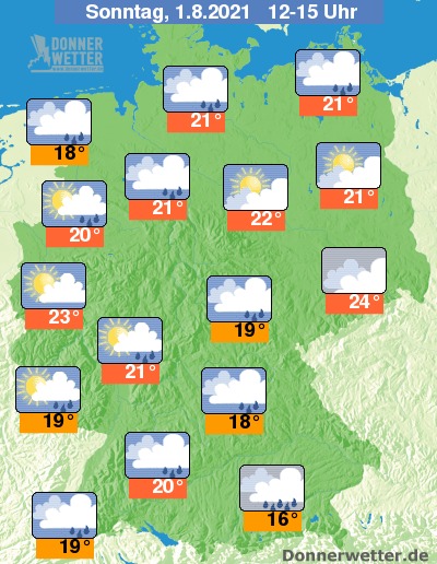 Heute Nachmittag sind regional heitere Abschnitte möglich, oft ziehen jedoch dichte Wolken durch, dabei bilden sich gebietsweise Schauer, örtlich entwickeln sich auch Gewitter. Die Temperatur steigt auf teils nur 16 Grad im Berchtesgadener Land und bis 24 Grad in der Lausitz.