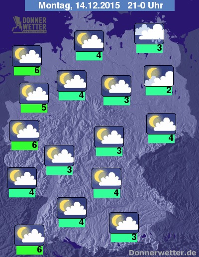 Heute Abend ziehen über den Nordosten des Landes dichte Wolken mit etwas Regen hinweg. Im großen Rest der Republik zeigt sich der Himmel dagegen verbreitet locker bewölkt und im Süden gebietsweise auch sternenklar, dabei bleibt es trocken. Die Abendtemperatur liegt bei 6 Grad in Ostfriesland und um 2 Grad an der polnischen Grenze.
