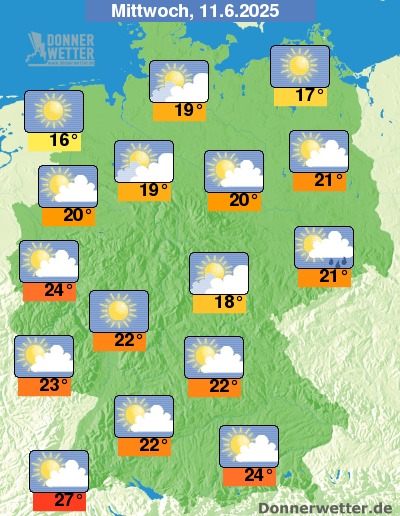 Temperaturen am Mittwoch um 16 bis 27 Grad.