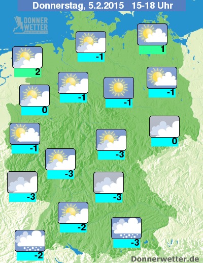 Heute Nachmittag bleiben vor allem im Stau der Alpen die Wolken weitgehend dicht und es schneit zeitweise, aber auch in der Mitte und im Osten des Landes halten sich oft dichte Wolken, hierbei fällt allerdings nur selten etwas Schnee. In den anderen Landesteilen ist es zumeist locker bis aufgelockert bewölkt und dabei trocken. In weiten Teilen Berlin-Brandenburgs und Westdeutschlands ist es zeitweise sogar sonnig. Die Temperatur liegt bei -3 Grad in München und bis 2 Grad an der Nordseeküste.