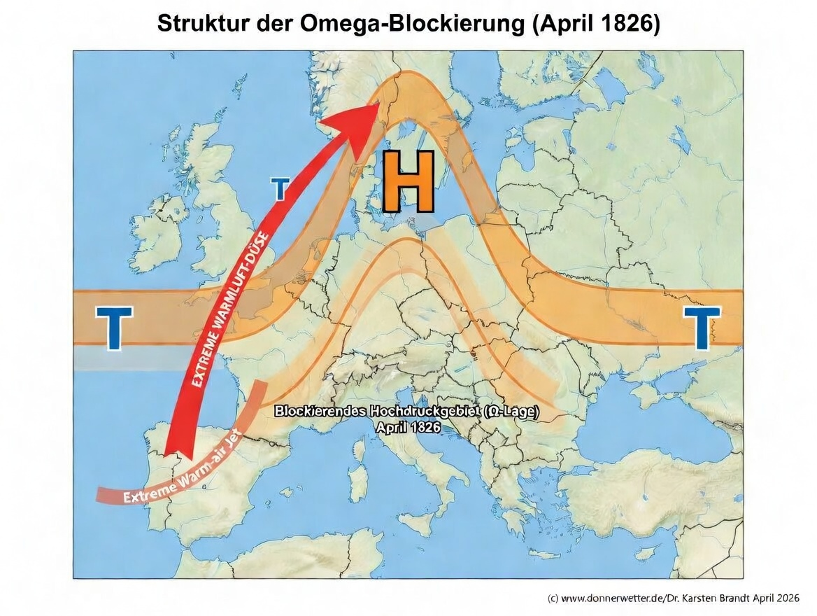 Gehen wir genau 200 Jahre zurück. Der April 1826 startete als extremes 5-Sigma-Ereignis mit Rekordhitze und Dürre im Frühjahr in Europa.