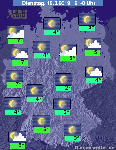 Bis Mitternacht lösen sich die Wolken auch im Norden immer mehr auf und der Himmel klart verbreitet auf.