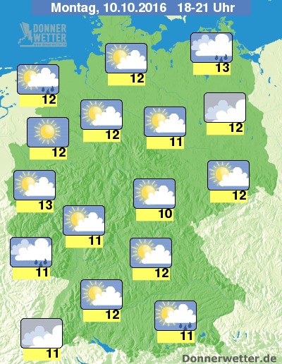 Heute Abend ist es im Nordosten verbreitet bedeckt, hier fällt zeitweise Regen, auch über dem Südwesten halten sich oft dichte Wolken, wobei hier nur regional auch mal etwas Regen fällt, sonst ist es verbreitet heiter und zum Teil sogar sonnig und mit Ausnahme des Alpenrands auch trocken. Die Temperatur liegt bei 10 bis 13 Grad.