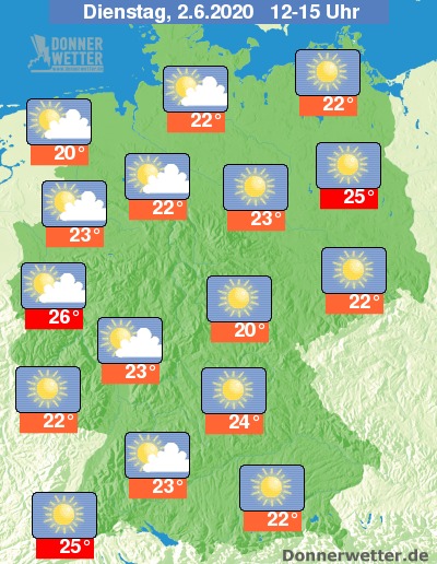 Die Temperaturen bewegen sich im frühsommerlichen Bereich von 20 bis 26 Grad.