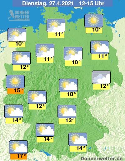 Heute Abend sind im Osten, Nordosten und an den Alpen gebietsweise einige, teils auch dichte Wolken möglich, sonst bleibt es aber verbreitet heiter bis sonnig. Bei Werten von 11 Grad in Rostock und bis 18 Grad in Freiburg bleibt es überall trocken.