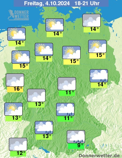 In der Nacht zum Samstag bleibt es im Süden, Südosten und Osten weiterhin dicht bewölkt und vor allem über Bayern, aber auch über Sachsen fällt zeitweise Regen oder es bilden sich Schauer. Im Südwesten ist es aufgelockert bis stark bewölkt und weitgehend trocken. Im übrigen Land ist der Himmel meist sternenklar oder nur locker bewölkt, dazu bleibt es trocken. Die Tiefstwerte liegen bei 10 Grad auf Rügen und etwa 5 Grad am Westerwald.