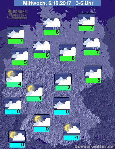 Am Mittwoch ist es im Süden und Südwesten häufig heiter oder sonnig, dabei bleibt es genauso trocken wie über der breiten Landesmitte, wo die Wolkendecke jedoch meist dicht bleibt. Weiter nach Norden und Osten fällt unter kompakten Wolken auch zeitweise Regen. Die Temperatur erreicht 3 bis 9 Grad. An den Küsten weht ein teils stürmischer Wind.