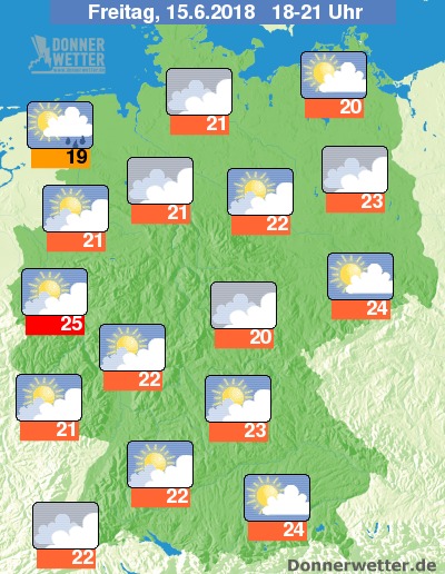 Heute Abend scheint vor allem über dem Südosten Deutschlands und im Ostseeumfeld die Sonne, sonst ziehen jedoch auch oft viele und zum Teil auch dichte Wolken übers Land hinweg. Bis auf ganz vereinzelte Schauer an der Nordsee bleibt es trocken. Die Temperatur liegt bei 19 Grad in Emden und bis 25 Grad in Bonn.