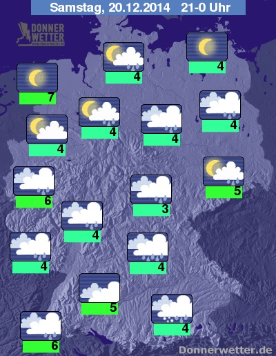 Heute Abend lockert die Bewölkung im Norden und Westen gebietsweise auf, es können sich jedoch vereinzelt weitere Schauer entwickeln. In den anderen Landesteilen bleibt es dagegen weitgehend bedeckt und es fällt zeitweise Regen oder Schneeregen, in höheren Lagen auch Schnee. Dazu weht noch verbreitet frischer bis starker, in Böen und an der See stürmischer Wind. Die Abendtemperatur liegt bei 7 Grad an der Nordsee und 3 Grad am Thüringer Schiefergebirge.