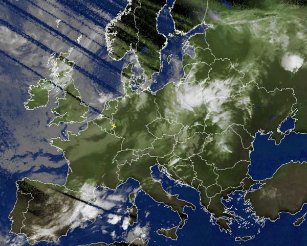 Auf dem Satellitenfoto von heute Morgen fallen besonders die verbreitet dichten und hochreichenden Wolken über Osteuropa ins Auge. Im Einflussbereich dieses Tiefdruckgebietes herrscht oft sehr nasses Schauerwetter mit teils kräftigen und auch ergiebigen Regenfällen.