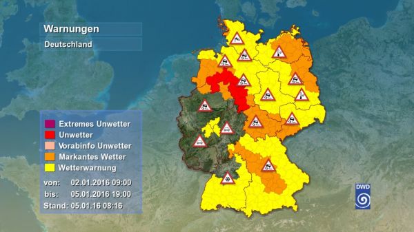 Heute Nachmittag halten sich im Norden meist dichte Wolken aus denen hier und da auch etwas Regen, Schneeregen oder Schnee fallen kann, dabei besteht Glättegefahr! Im Alpenvorland ist es ebenfalls meist dicht bewölkt mit gelegentlichem Regen. Im übrigen Bundesgebiet zeigt sich neben teils dichten Wolken auch gebietsweise die Sonne und es ist zumeist trocken. Die Temperatur steigt auf -3 Grad in Berlin und bis 8 Grad in der Kölner Bucht. An den Küsten weht teils starker Wind.