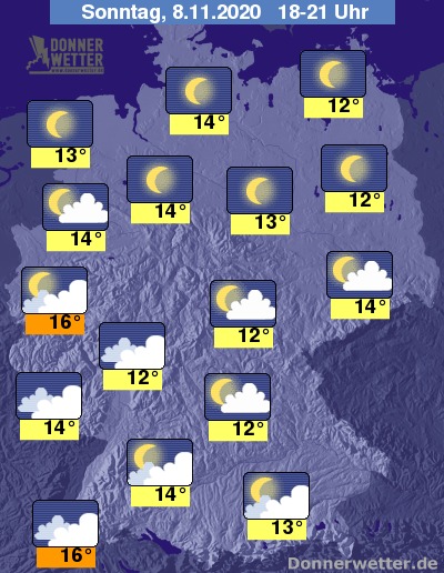 Die Temperaturen sinken am späten Abend auf Werte um 14 Grad im Rheinland und 7 Grad an der Spree.
