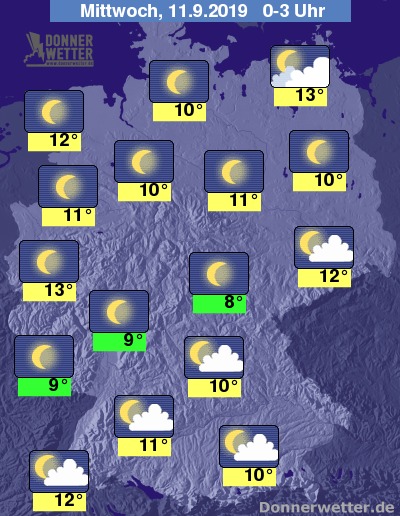 In der Nacht auf Mittwoch zeigt sich der Himmel über weiten Landesteilen sternenklar, einzelne lockere Wolken halten sich bis in die frühen Morgenstunden meist nur entlang der Oder sowie im äußersten Südosten. Schauer sind in der Nacht nicht zu erwarten.