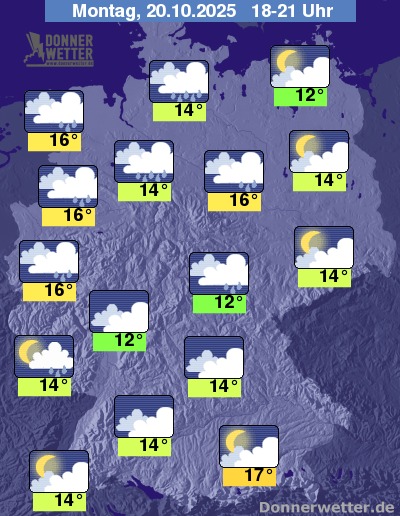 Heute Abend sind in den östlichsten Landesteilen noch Auflockerungen möglich, ansonsten zieht von Westen her jedoch kompakte Bewölkung durch und vor allem im Norden, aber auch im Westen fällt teils kräftiger Regen. Im Süden und Osten ist es noch weitgehend trocken. Die Temperatur liegt bei 12 Grad an der Müritz und etwa 17 Grad in München.