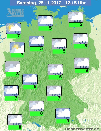 Heute Abend zieht sich der Regen auf den Süden und Sachsen zurück, jedoch bleibt es auch sonst weitgehend wolkenverhangen, dazu allerdings meist trocken. Vom Mittel- bis Niederrhein ist gebietsweise etwas Regen möglich. Die Temperatur liegt bei kühlen 5 bis 9 Grad.