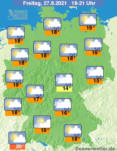 Am Samstag ist es meist stark bewölkt oder bedeckt, dabei bilden sich wiederholt Schauer, örtlich entwickeln sich auch mögliche Gewitter. Jedoch zeigen sich gebietsweise auch Auflockerungen. Die Temperatur steigt auf 14 Grad in Augsburg und bis 21 Grad in Magdeburg.
