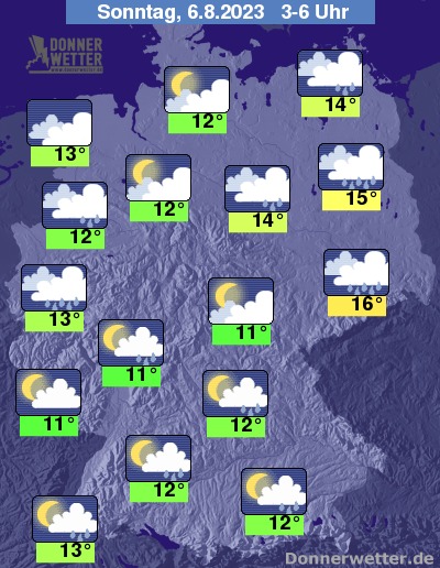 In der Nacht zum Sonntag ziehen zeitweise kompakte Wolken durch und es bilden sich teils kräftige Schauer. Dazwischen ist es aber auch längere Zeit trocken und der Himmel kann auflockern. Die Temperatur sinkt auf 16 Grad in Dresden und etwa 11 Grad in Wiesbaden.