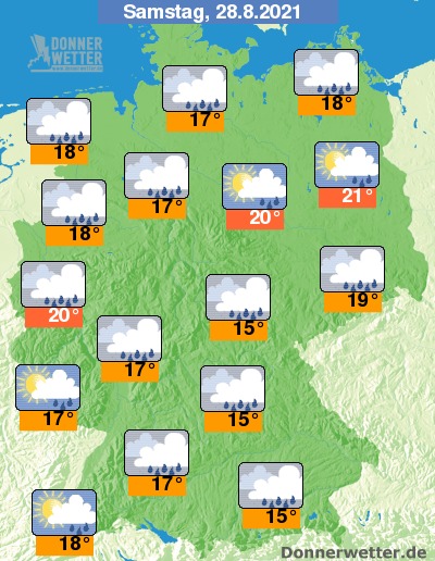 Heute ist es meist stark bewölkt oder bedeckt, dabei bilden sich wiederholt Schauer, örtlich entwickeln sich auch mögliche Gewitter. Jedoch zeigen sich gebietsweise auch Auflockerungen. Die Temperatur steigt auf 15 Grad in München und bis 21 Grad in Berlin.