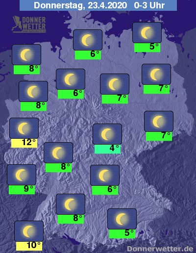 In der Nacht auf Donnerstag sinken die Temperaturen in Deutschland auf 4 Grad im Thüringer Bergwald und auf 12 Grad in Köln. Die Nacht zeigt sich zudem klar.