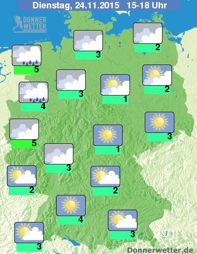 Heute Abend nimmt die Bewölkung auch im Osten und im Süden der Republik immer weiter zu, jedoch bleibt es hier bis Mitternacht weitgehend trocken, im übrigen Bundesgebiet hält sich eine geschlossene Wolkendecke, dazu fällt immer wieder Regen, Schneeregen oder auch Schnee. Verbreitet muss mit glatten Straßen gerechnet werden! Im Norden weht ein frischer bis starker, an den Küsten auch ein stürmischer Wind.