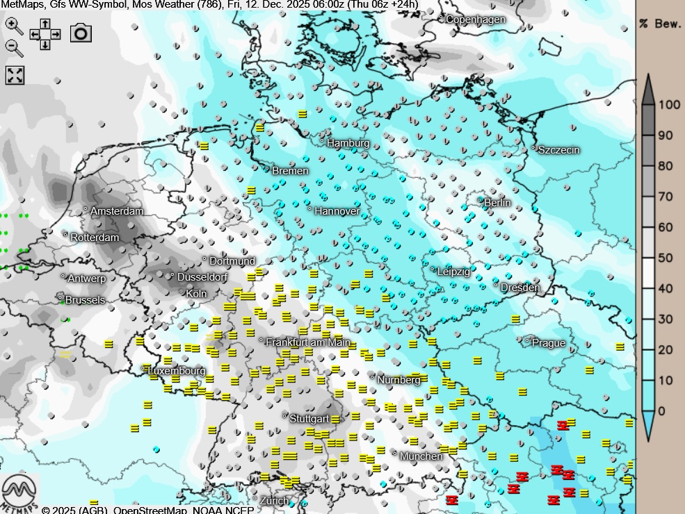 Die Wetterkarte für Freitagfrüh (06:00 Uhr) nach GFS: