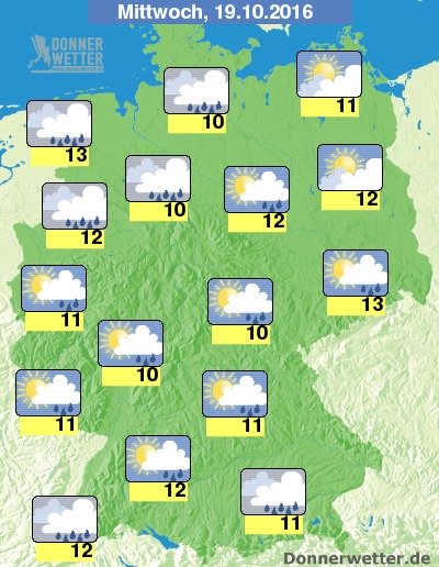 Heute zeigt sich der Himmel über der Bundesrepublik vorübergehend mal leicht bis aufgelockert, jedoch auch immer wieder stark bewölkt, dazu fällt zeitweise Regen. Längere Regenpausen sind jedoch möglich. Die Temperatur steigt auf kühle 10 bis 13 Grad.