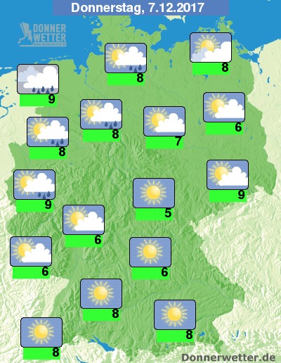 Auf der Vorderseite des über dem Europäischen Nordmeer angelangten Sturmtiefs wird mit kräftig auffrischendem Südwestwind vorübergehend trockene und milde Luft ins Land gepustet, so dass sich die graue Wolkenpampe für einige Zeit mal auflösen kann. In der Nacht auf Freitag überquert uns die Kaltfront des Tiefs. Ihr folgt ein neuer Schub arktischer Kaltluft.
