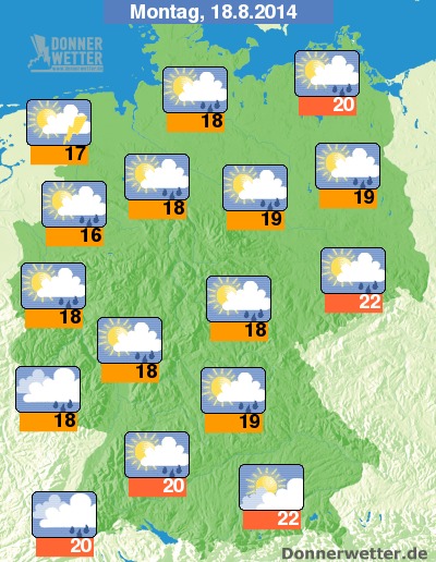 Für heute werden besonders im Norden und Nordwesten unter verbreitet dichten Wolken häufig Schauer und auch einzelne Gewitter erwartet. Auch sonst sind praktisch landesweit einzelne Schauer möglich, jedoch zeigt sich auch immer wieder mal die Sonne. Bei insgesamt frühherbstlichen Werten zwischen 16 Grad im Emsland und etwa 22 Grad in München und Dresden weht an den Küsten und auf den Bergen der Mittelgebirge noch ein vielfach frischer bis starker Wind mit möglichen Sturmböen.