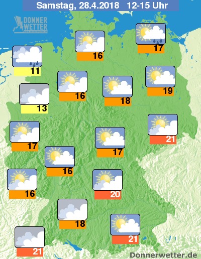 Heute Abend sind in Nordseenähe weiterhin Schauer möglich, sonst ist es im Norden auch oft heiter bis wechselnd bewölkt und dabei trocken. Im Alpenvorland bilden sich teils dichte Quellwolken, dabei sind sowohl Schauer als auch Gewitter möglich. Im übrigen Land ist es teils wechselnd bis aufgelockert, teils auch stark bewölkt, dabei jedoch weitgehend trocken. Die Temperatur liegt bei 12 Grad in Cuxhaven und bis 22 Grad in Dresden.
