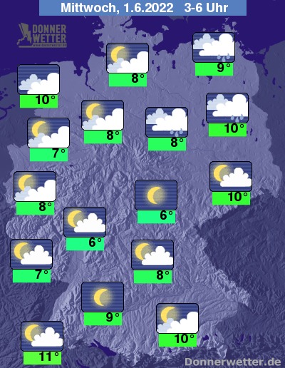Die Temperaturen erreichen in den späten Morgenstunden Werte um 7 Grad im Saarland, 11 Grad an der Ostseeküste und 15 Grad in Sächsischen Schweiz.