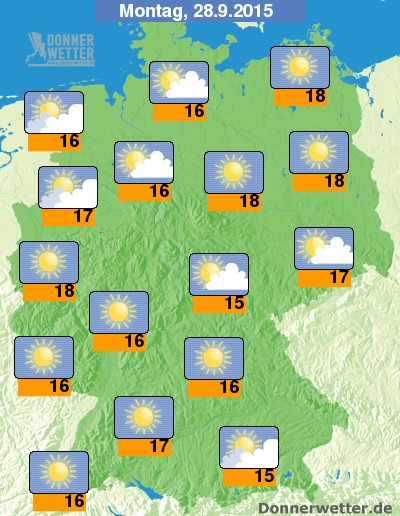 Heute scheint die Sonne meist von einem leicht bewölkten oder häufig auch wolkenlosen Himmel. Gebietsweise mehr Wolken ziehen jedoch über den Nordwesten und auch den Südosten Deutschlands hinweg, es bleibt aber landesweit trocken. Die Temperaturen steigen auf 15 Grad in München und bis 18 Grad in Berlin.