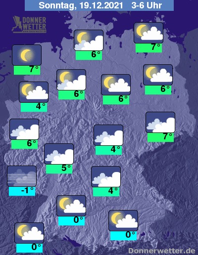 In der Nacht zum Sonntag ist der Himmel oft stark bewölkt, vielerorts lockert es aber auch auf, dazu bleibt es trocken. Es bildet sich stellenweise Nebel. Die Temperatur sinkt auf 7 Grad in Stralsund und bis -1 Grad in Saarbrücken.