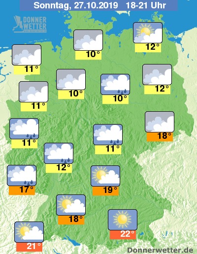 Heute Abend ist es im Süden noch oft heiter bis sonnig und trocken. Weiter nach Norden hin ist es dagegen stark bewölkt und über der breiten Landesmitte fällt zeitweise Regen, im Norden bleibt es hingegen trocken. Die Temperatur liegt bei 10 Grad in Hamburg und bis 22 Grad in München.