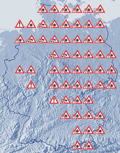 Am Montag fällt bereits am Morgen in einem sehr breiten Streifen von der Nordsee bis zum Bayerischen Wald immer wieder Schnee, südwestlich davon ist es meist Regen, teils auch Schneeregen oder gefrierender Regen, dabei besteht Glättegefahr! Im Tagesverlauf breitet sich der Schneefall auf den Norden und Osten der Republik aus. Im Nordost bleibt es bei meist nur lockerer Bewölkung trocken. Nach Süden und Westen hin bleibt es meist stark bewölkt, vor allem im Südwesten lockert die Bewölkung aber auch häufig auf, hier und da fällt etwas Regen oder auch Schneeregen. Die Temperatur steigt auf -4 Grad in Vorpommern und bis 8 Grad in Stuttgart. Im Norden weht teils starker, in den norddeutschen Mittelgebirgen und an den Küsten teils stürmischer Wind.