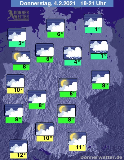 Die Temperaturen sinken bis Mitternacht auf Werte um 9 Grad am Oberrhein und -2 Grad an der Ostseeküste.