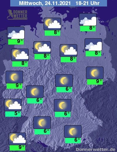 In der Nacht zum Donnerstag hält sich vor allem rund um die Küsten, aber auch im übrigen Norden meist dichte Wolken, hier und da kann es aber auch etwas auflockern. Im übrigen Bundesgebiet ist es verbreitet locker bewölkt oder sternenklar, dazu bleibt es trocken. Stellenweise kann sich Nebel bilden. Die Temperatur sinkt auf 5 Grad direkt an der Nordsee und auf etwa -3 Grad im Münchner Umland.